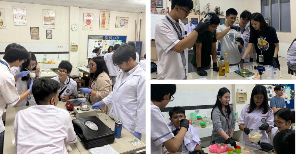 The Biotechnology Study Program of BINUS University, in collaboration with St. John Catholic High School, organizes an extracurricular program titled “Sustainable Bioproduct.” This initiative forms part of the university’s Community Service activities, aiming to empower youth to increase awareness of the Sustainable Development Goals (SDGs) through the development of innovative, eco-friendly, and natural products that utilize organic waste materials. The program was conducted over one semester from August to November 2025. The activity modules were divided into five (5) sessions, each of which was designed based on research outcomes from the Faculty Member of the Biotechnology Study Program, led by Dr. Dwiyantari Widyaningrum as the primary instructor. The program was also assisted by the Biotechnology students Joan Cindana and Regita Agustin.
